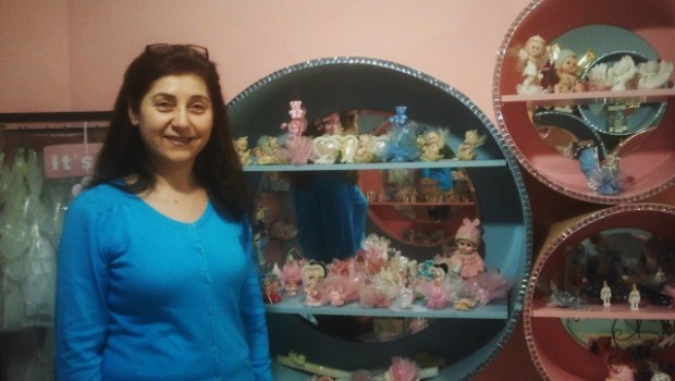 Ze gaat voorop door de winkel en laat zien wat Merci Beaucoup allemaal verkoopt: zelfgemaakte bedankjes met bruidsuikers, lintjes, strikjes, kristallen figuurtjes, receptieboeken, witte doopjurken en heel kleine witte pakken voor jongetjes die ergens netjes moeten verschijnen. Er zijn bruidspaartjes voor op de taart – ook in de varianten met twee bruiden of twee bruidegommen – en bedankjes met een kruis erop voor de Christelijke, en met een Koran voor de Islamitische klanten. Alles zelf gemaakt, en persoonlijk afgestemd op de koper. Omdat Youla zelf uit de Armeense Kerk komt, is er ook een hoekje met spulletjes met Armeense Bijbelteksten. Syrische lekkernijen verkocht ze vroeger ook, maar dat gaat niet meer nu haar thuisland al zo lang in oorlog is.