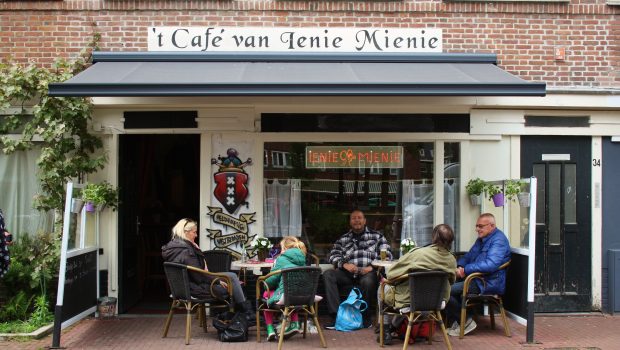 Een beetje verscholen, net om de hoek van de Vespuccistraat, zit café Ienie Mienie. Amsterdams schild op de gevel, Ajax-vaandels aan de muur. Barvrouw, buurtmoeder en -psycholoog Edwina staat er al twintig jaar achter de toog.