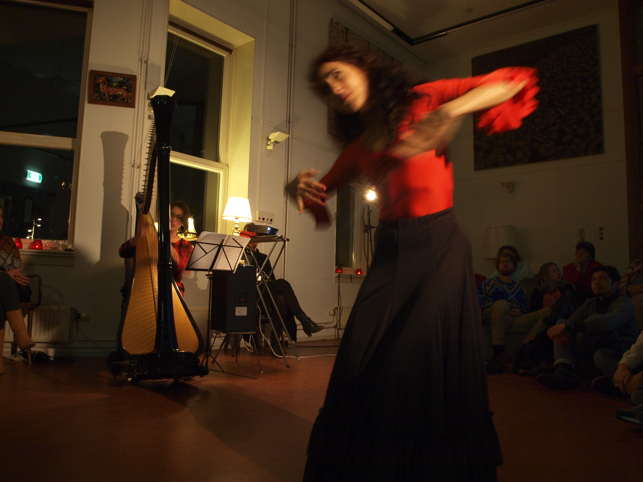 Donker en winters, maar o-zo gezellig was het gisteren in onze buurt. Het plein naast de ingang van Midwest stond om 19:30 uur vol met trappelende enthousiastelingen in afwachting van hun eigen ‘routekaart’ die hun de weg wees naar diverse muziek, theater, toneel, cabaret en filmvoorstellingen. Bezoekers van het Festival Jan Eef werden ingedeeld in groepen met elk hun eigen programma. De optredens werden gehouden in winkels en horeca waar het normaal donker is achter de ramen. Dat maakte het festival extra sfeervol. Mooi om te zien hoe de groepen al napratend door de winkelstraat liepen en bleven hangen onder de luifels met een drankje. Zelfs nietsvermoedende jongens op scooters verminderden hun snelheid om even naar binnen te kijken.