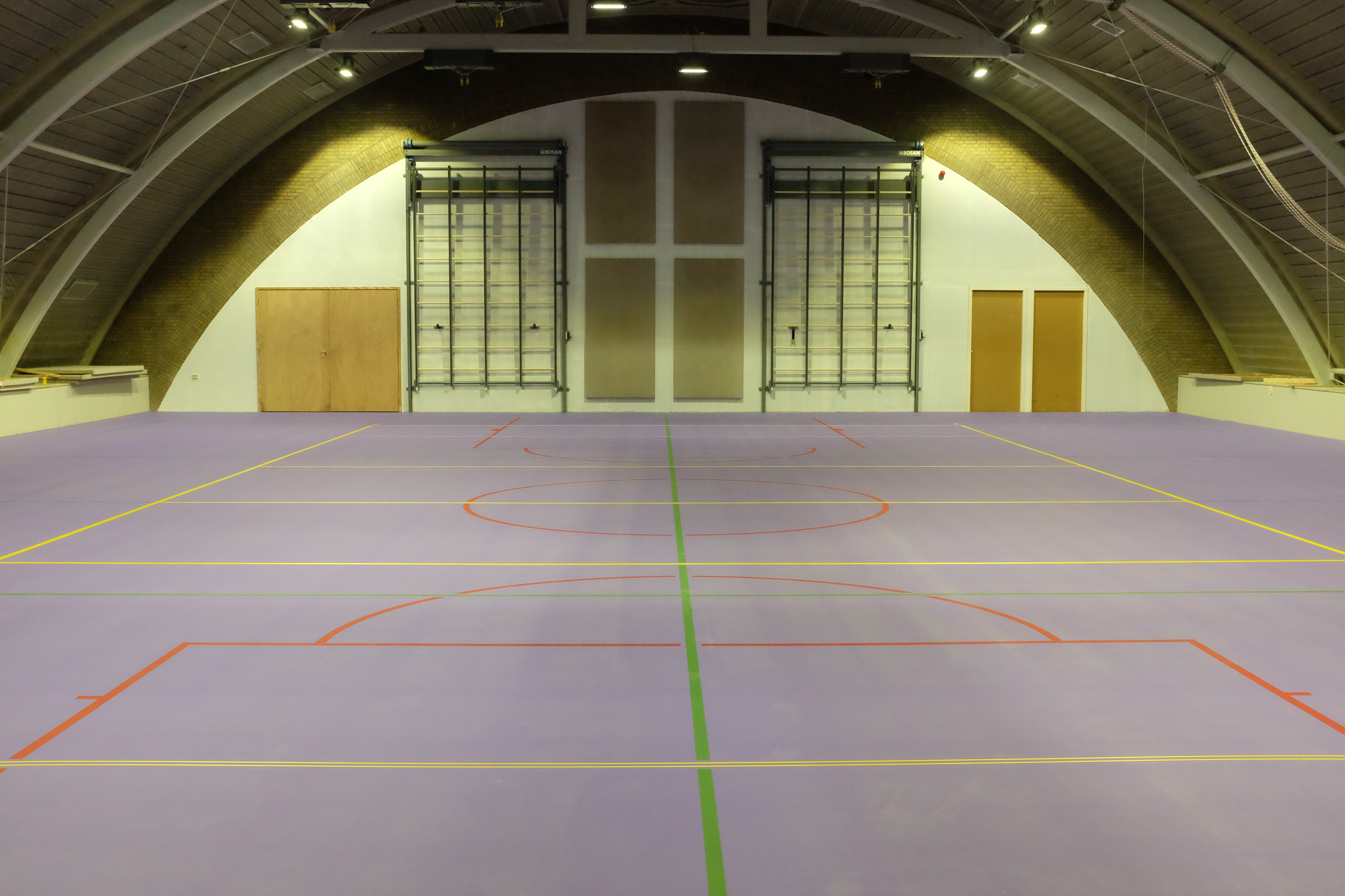 Helemaal in de nok van de kerk is de gymzaal, waar basisscholen uit de buurt gebruik van gaan maken. De balken van het plafond liggen als een koepel over de zaal heen. Misschien wordt de ruimte ooit nog wel gebruikt als theaterzaal, zodat ook hier de buurt bijeen kan komen.