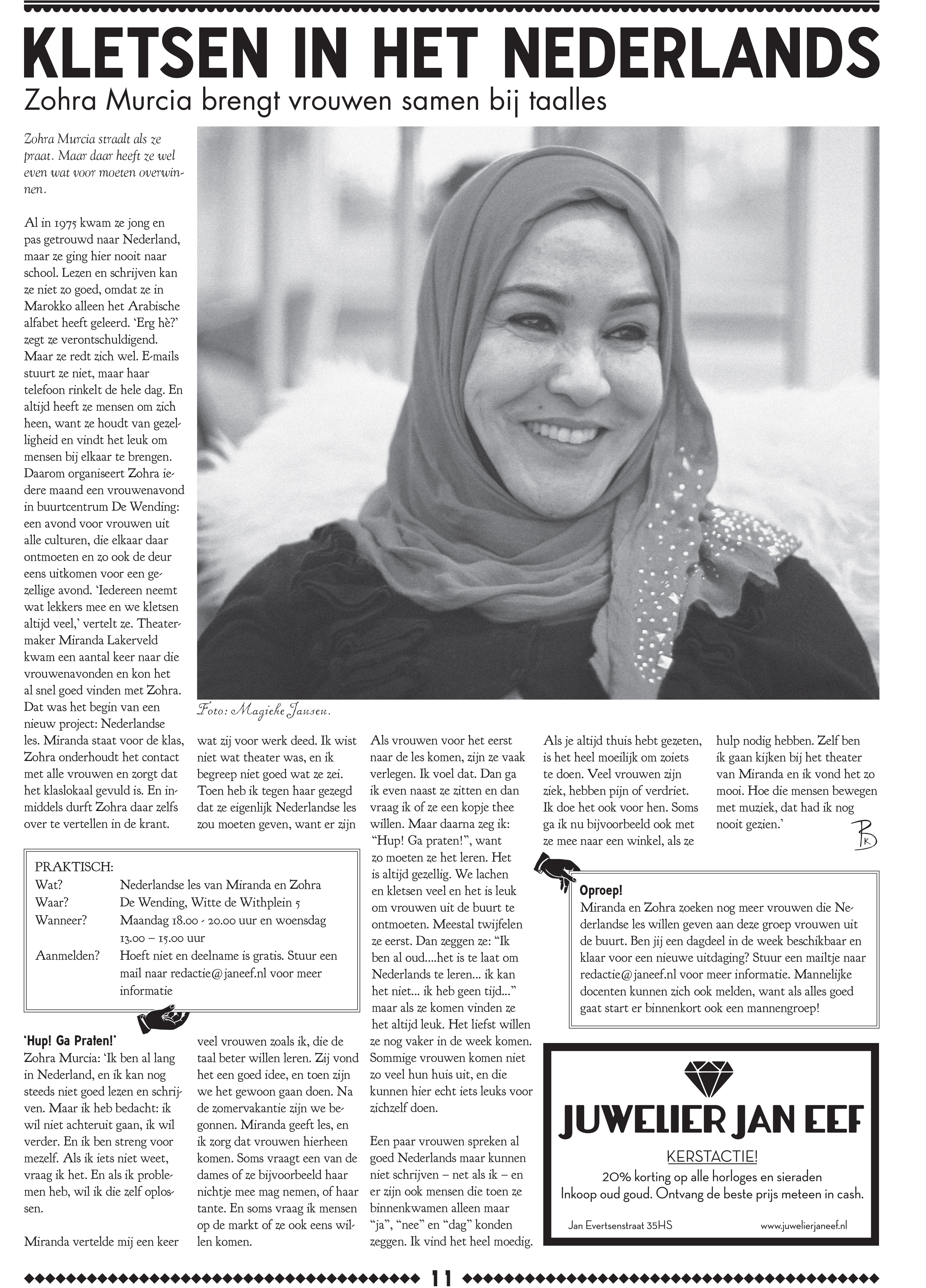 Sociale interactie speelt zich steeds meer op het internet af. Nieuws wordt steeds vaker van een telefoon of tablet gelezen. En Jan Eef? Die is graag een beetje tegendraads. In september 2014 bracht ons communicatieteam de eerste editie van De Jan Eef uit, een papieren krant met een nostalgische vormgeving die helemaal over onze buurt gaat en die samen met buurtbewoners tot stand komt. Op 13 december 2014 komt de tweede editie uit. Op de Mercatormarkt en in diverse winkels in de Jan Evertsenstraat kun je deze bemachtigen. Een speciale kersteditie met o.a. een interview met misschien wel het oudste koppel uit onze buurt, een fantastisch lowbudget kerstrecept, het allernieuwste op het gebied van horeca en cultuur en diverse sprankelende bijdragen van buurtbewoners. Bekijk hier alvast een voorproefje.