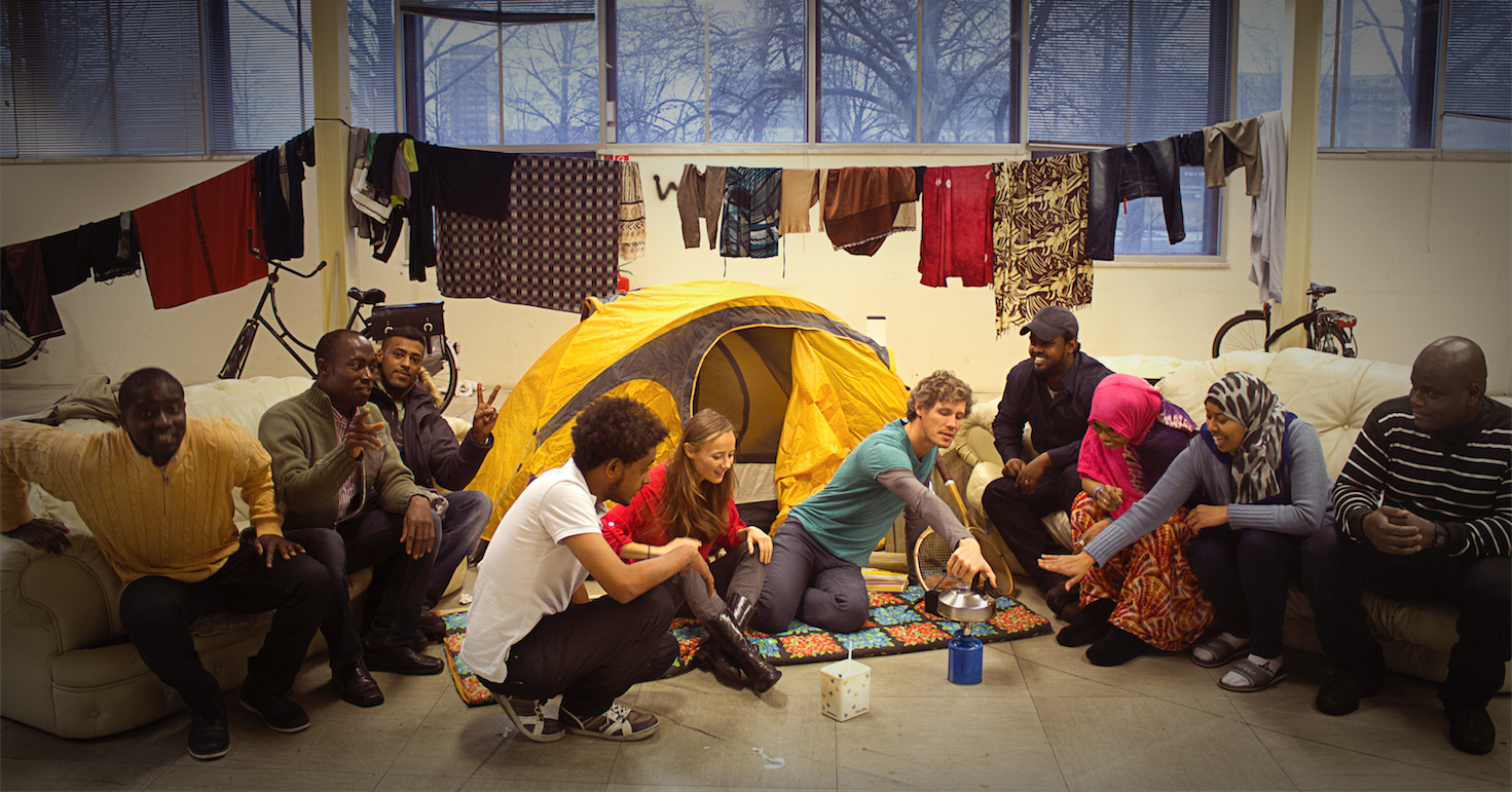 Zo’n 2,5 jaar geleden was Rikko intensief betrokken bij de Vluchtkerk, het eerste onderkomen van vluchtelingengroep Wij Zijn Hier in Amsterdam-West. Het verhaal in een notendop: een groep ongedocumenteerden zwerft door Amsterdam. De meesten van hen zijn uitgeprocedeerd en mogen niet in Nederland blijven, maar terug naar hun eigen land kunnen ze ook niet. Omdat ze daar gevaar lopen, of omdat hun vaderland hen niet meer toelaat. Wij Zijn Hier is hun protest, waarmee ze willen laten zien dat zij er ook zijn, en dat ze nergens anders naartoe kunnen. In het Vluchtgebouw wonen nu ongeveer 80 mensen.