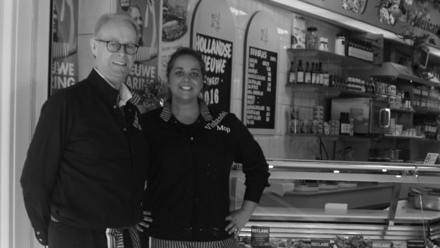 Kees Kwakman laat me een ingelijst certificaat zien dat aan de muur hangt in zijn Vishandel Mop in de Jan Evertsenstraat. Het is een CO2-reductiecertificaat; een bewijs dat de vishandel de olie waarin de vis gebakken wordt, recyclet. ‘Wij zijn een heel duurzaam bedrijf. De hele visindustrie is milieubewust. We halen ons product uit de zee, dus we zorgen ervoor dat we goed omgaan met de aarde.’ Goed omgaan met de aarde betekent voor Kwakman dat hij karton, plastic, visafval en blik in de winkel apart houdt en naar het vis-inzamelstation in Volendam brengt. ‘Afval scheiden is iets van de afgelopen twintig jaar. Maar milieubewust is onze vishandel al mijn hele leven.’