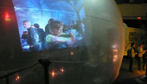 Een opblaasbare lichtzak en een SRV-wagen als creatief decor Mercatorplein