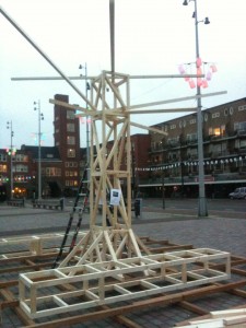 Al een paar dagen staat er een houten staketsel in de vorm van een boom op het Mercatorplein. Jan Eef vraagt zich af: wat is dat?